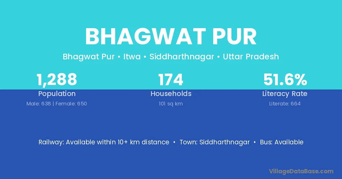 Bhagwat Pur village has a total population of 1,288 people, of which 638 are males and 650 are females.