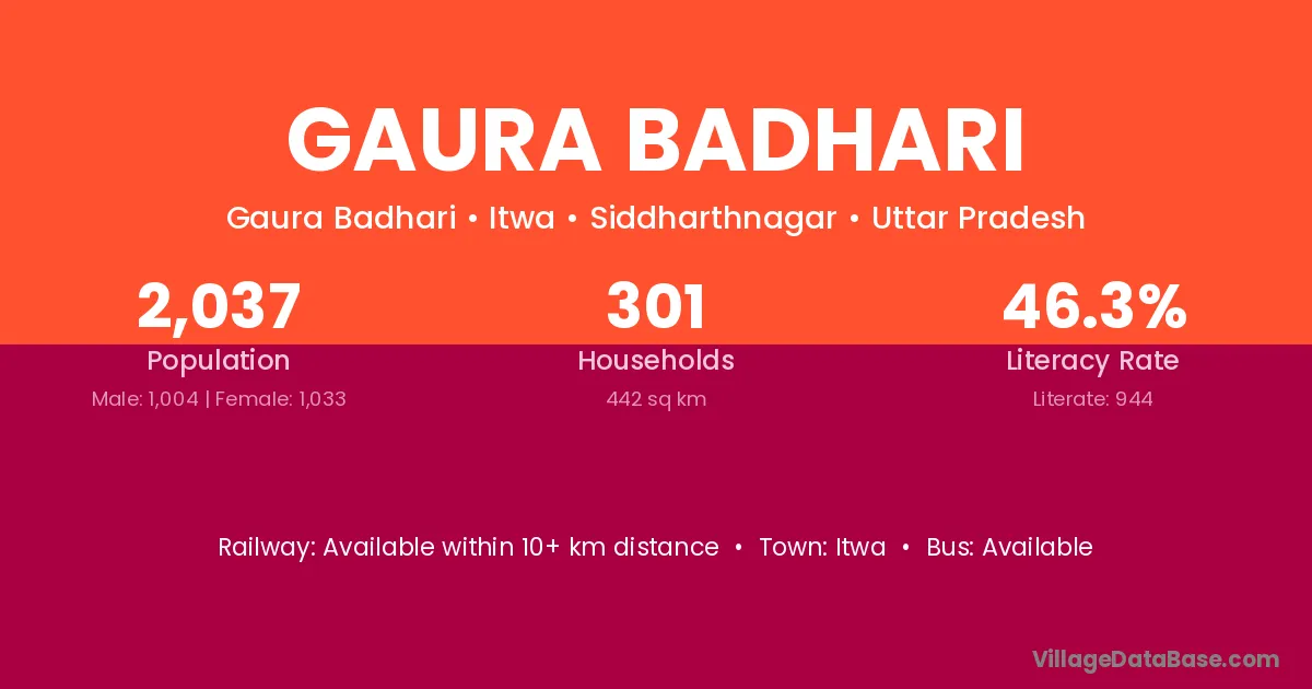 Itwa is the nearest town to Gaura Badhari village for major economic activities
