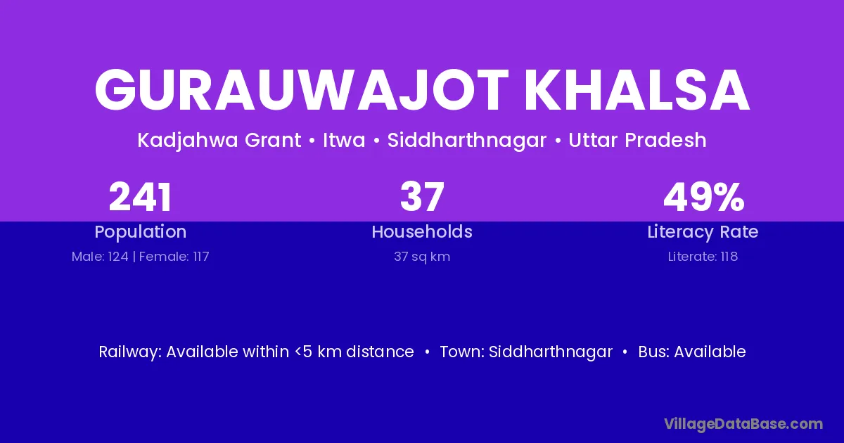 Siddharthnagar is the nearest town to Gurauwajot Khalsa village for major economic activities