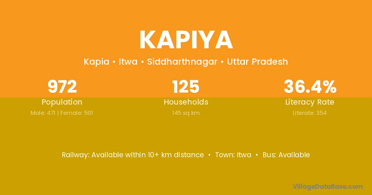 Kapiya village has a total population of 972 people, of which 471 are males and 501 are females.