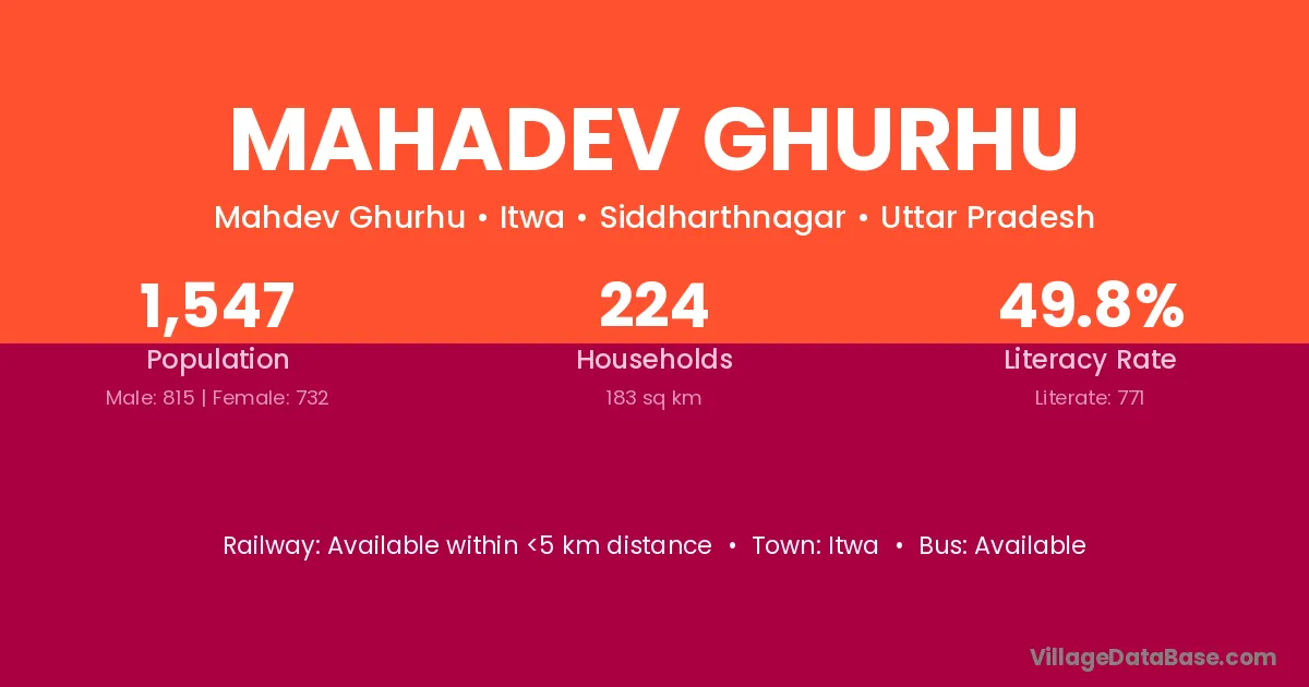 Mahadev Ghurhu village has a total population of 1,547 people, of which 815 are males and 732 are females.