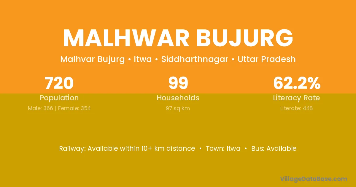 Itwa is the nearest town to Malhwar Bujurg village for major economic activities