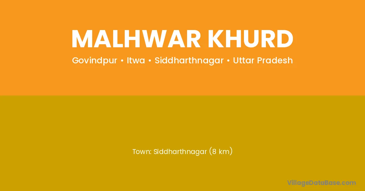 Siddharthnagar (8 km) is the nearest town to Malhwar Khurd village for major economic activities and is located approximately 8 km away.