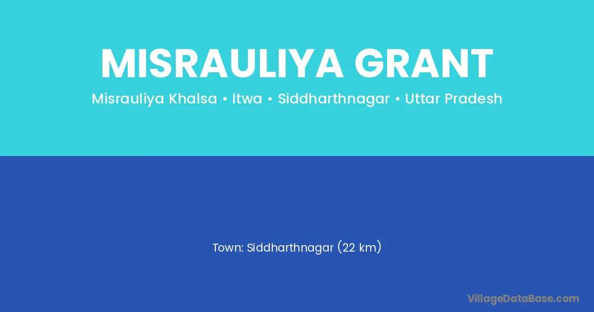 Siddharthnagar (22 km) is the nearest town to Misrauliya Grant village for major economic activities and is located approximately 22 km away.
