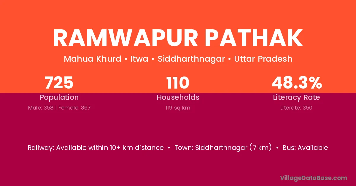 Ramwapur Pathak village has a total population of 725 people, of which 358 are males and 367 are females.