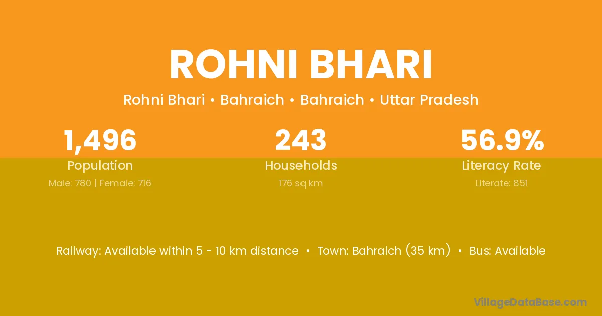 Rohni Bhari village has a total population of 736 people, of which 384 are males and 352 are females.