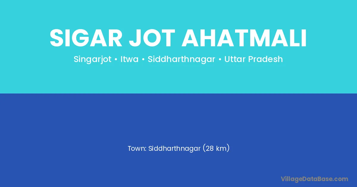 Siddharthnagar (28 km) is the nearest town to Sigar Jot Ahatmali village for major economic activities and is located approximately 28 km away.