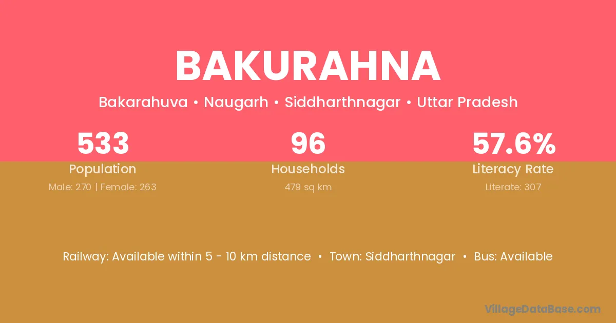 Bakurahna village has a total population of 533 people, of which 270 are males and 263 are females.