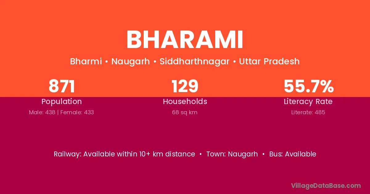 Bharami village has a total population of 871 people, of which 438 are males and 433 are females.