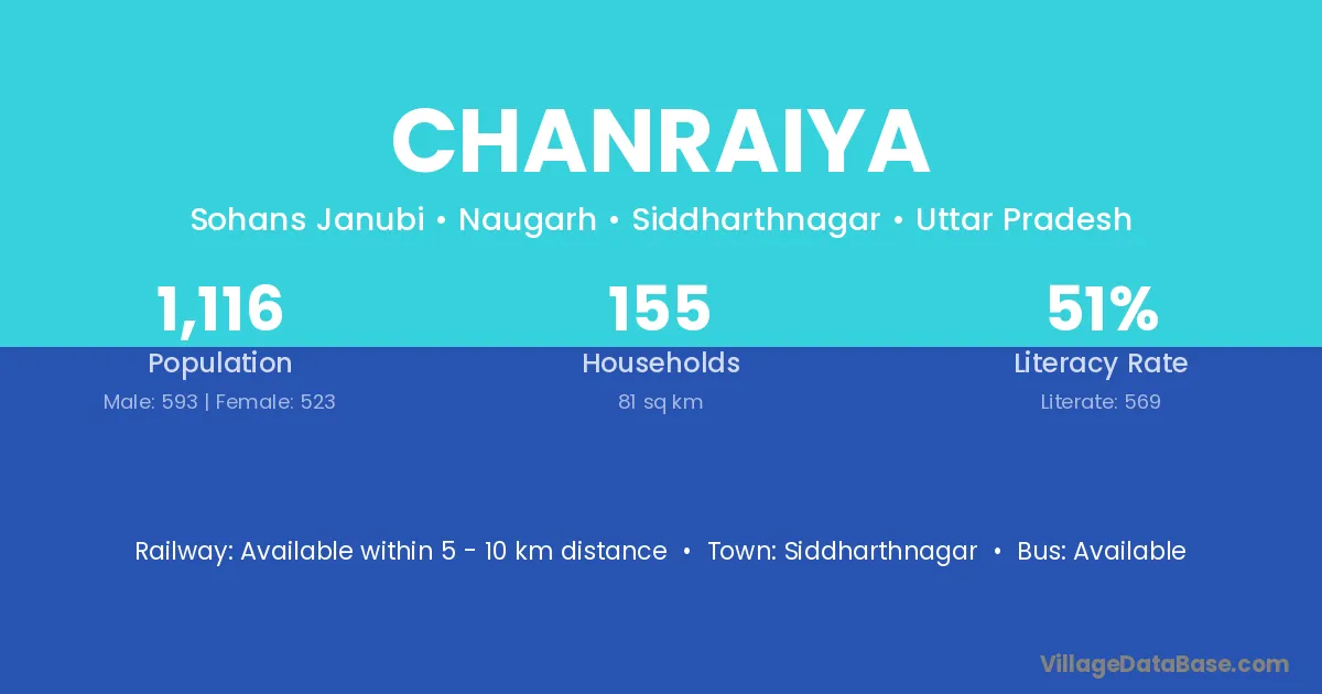 Siddharthnagar is the nearest town to Chanraiya village for major economic activities