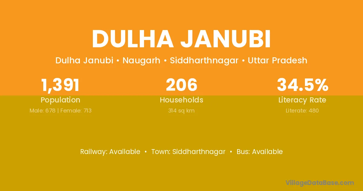 Siddharthnagar is the nearest town to Dulha Janubi village for major economic activities