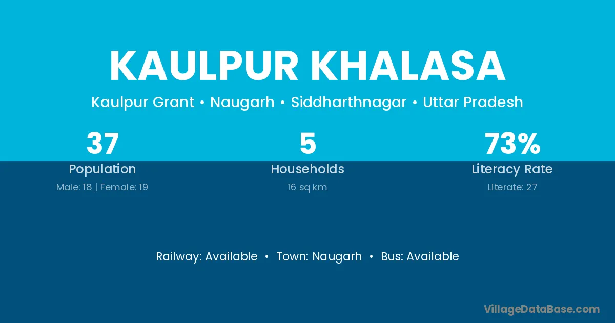 Kaulpur Khalasa village has a total population of 37 people, of which 18 are males and 19 are females.
