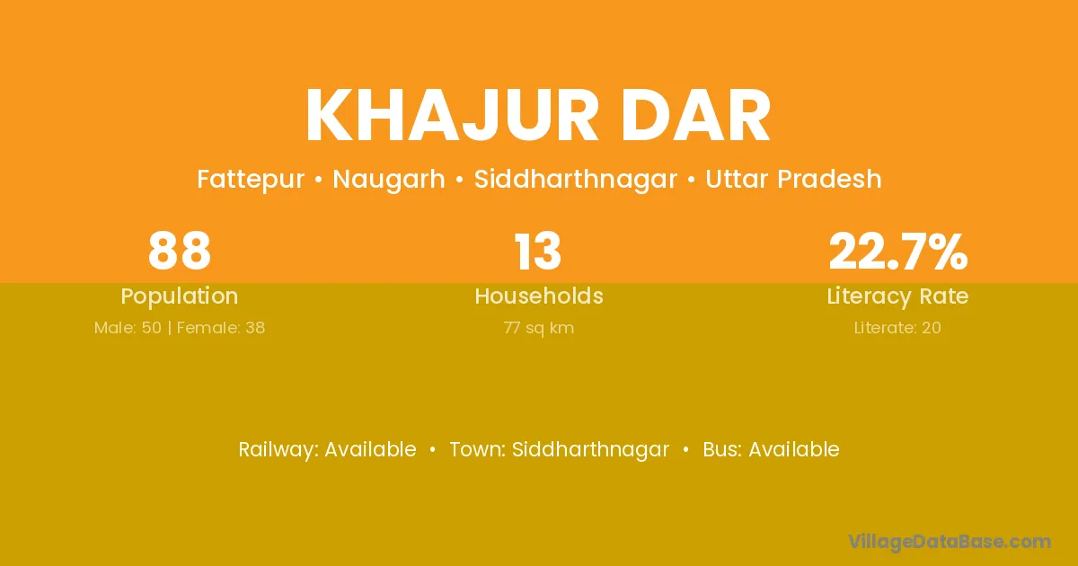 Siddharthnagar is the nearest town to Khajur Dar village for major economic activities