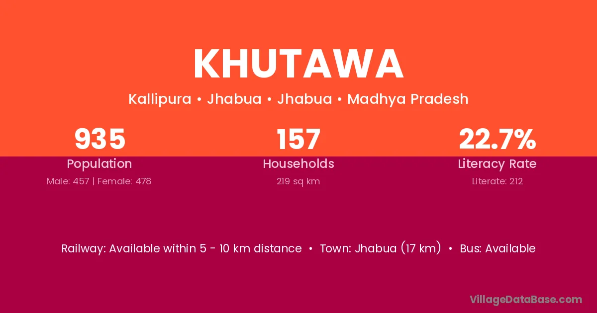 Khutawa village has a total population of 771 people, of which 403 are males and 368 are females.