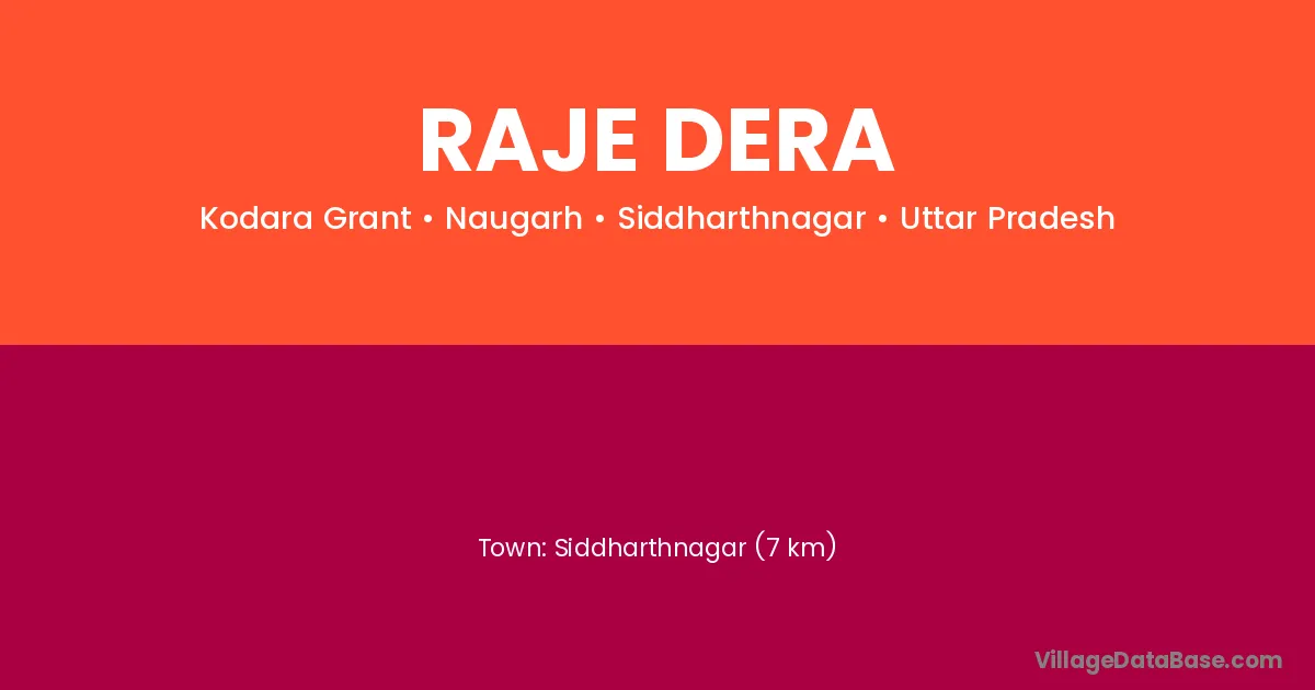 Siddharthnagar (7 km) is the nearest town to Raje Dera village for major economic activities and is located approximately 7 km away.