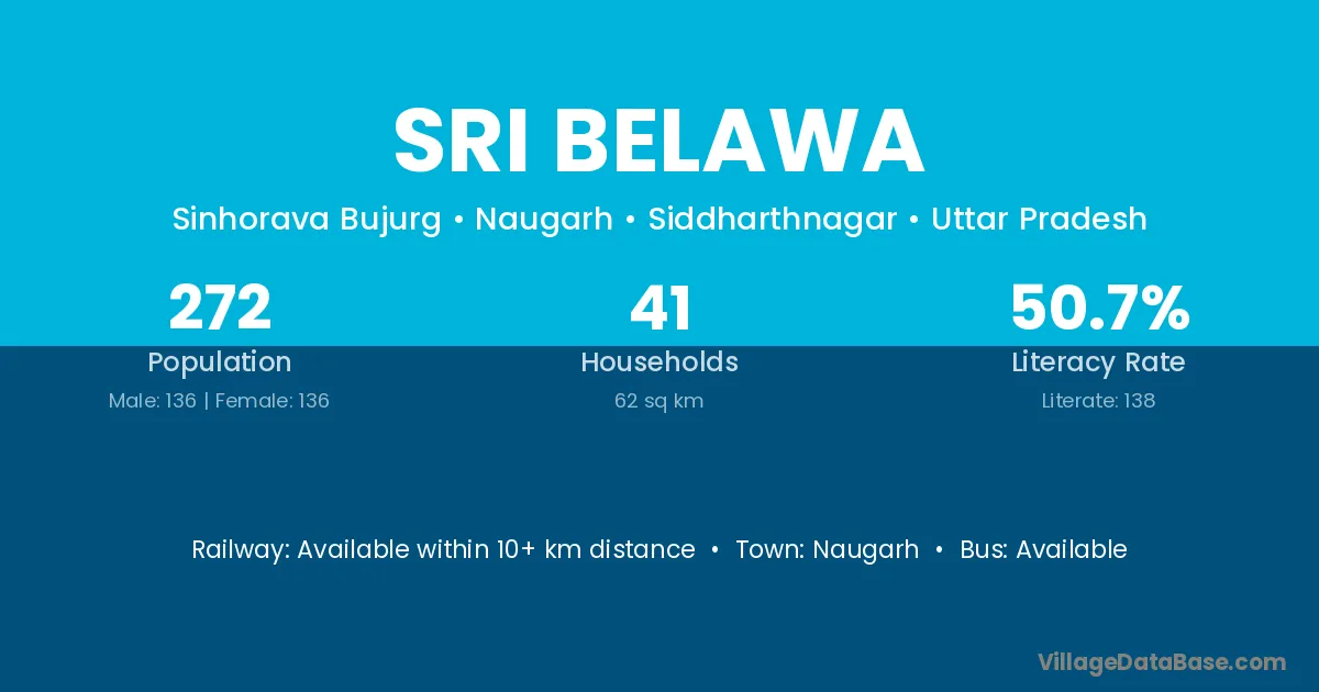 Sri Belawa village is located in the Naugarh Tehsil of the Siddharthnagar district in Uttar Pradesh .