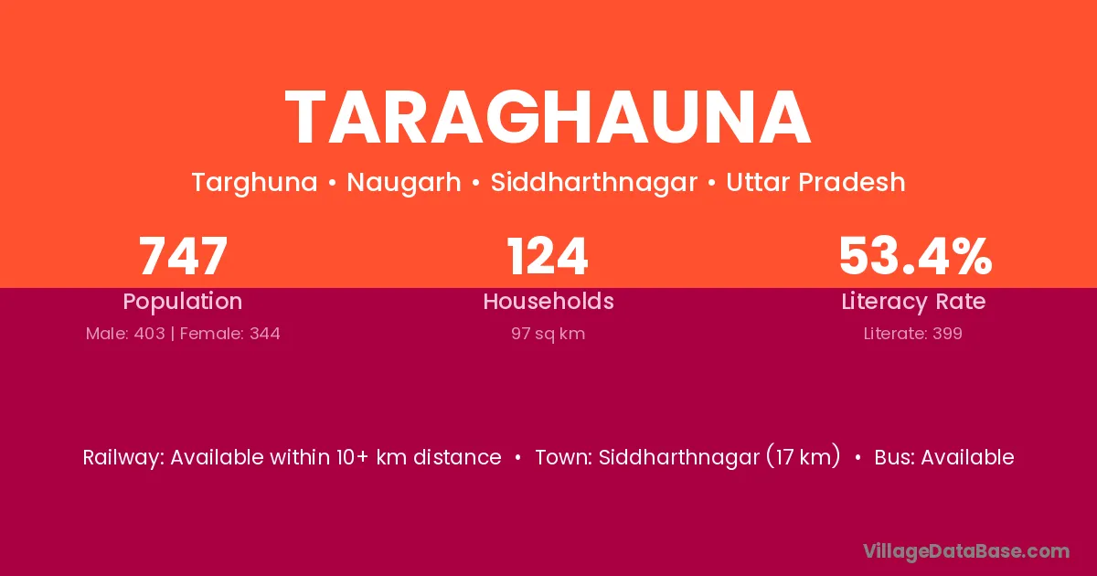 Siddharthnagar (17 km) is the nearest town to Taraghauna village for major economic activities and is located approximately 17 km away.