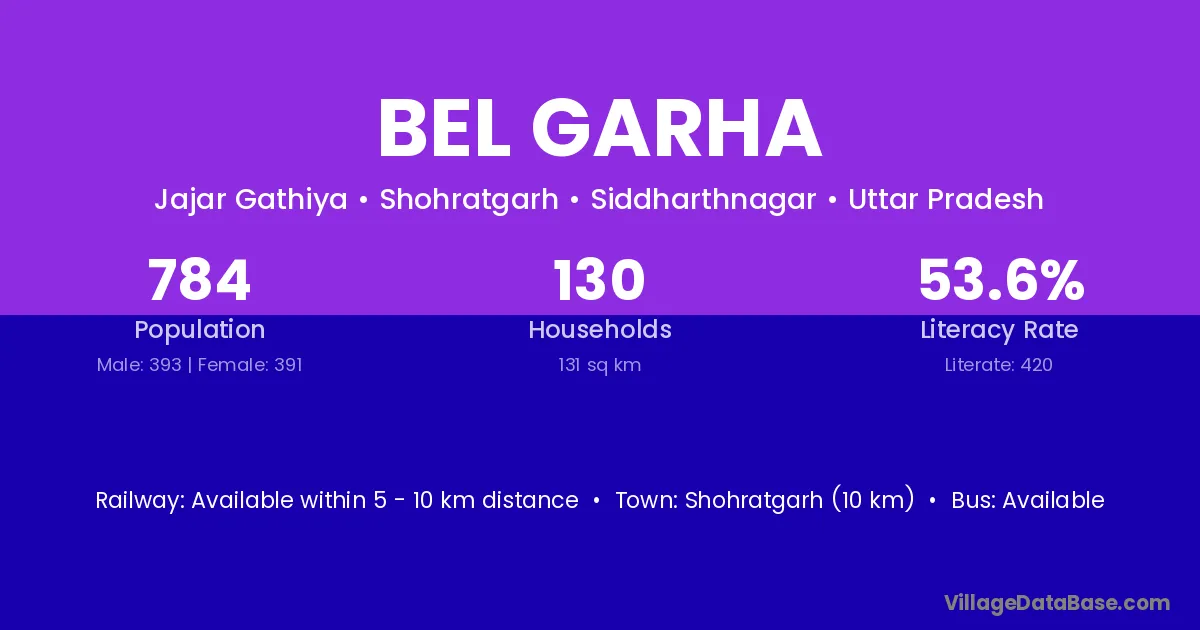 Shohratgarh (10 km) is the nearest town to Bel Garha village for major economic activities and is located approximately 10 km away.