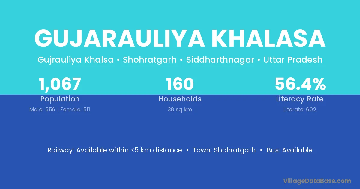 Gujarauliya Khalasa village has a total population of 1,067 people, of which 556 are males and 511 are females.
