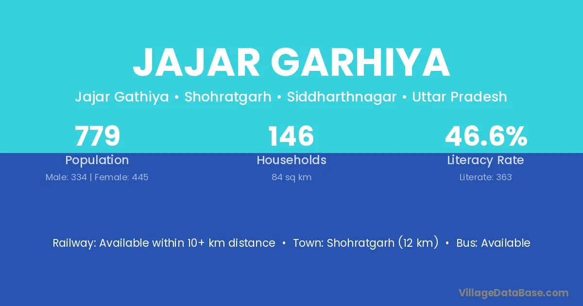 Shohratgarh (12 km) is the nearest town to Jajar Garhiya village for major economic activities and is located approximately 12 km away.