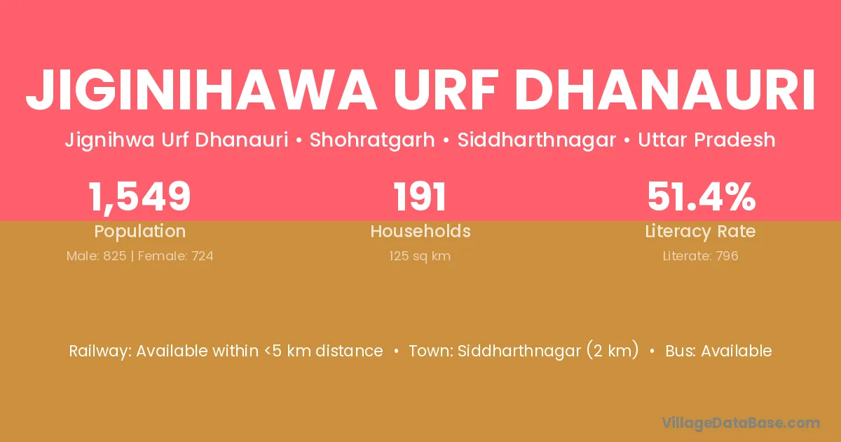 Jiginihawa Urf Dhanauri village has a total population of 1,549 people, of which 825 are males and 724 are females.