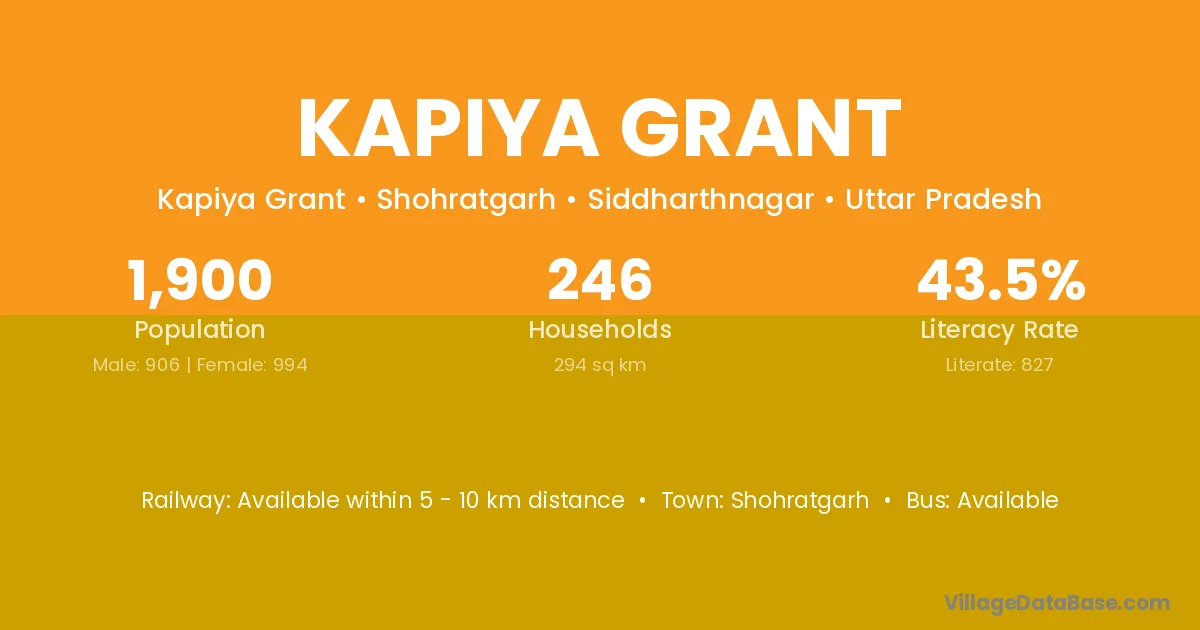 Shohratgarh is the nearest town to Kapiya Grant village for major economic activities