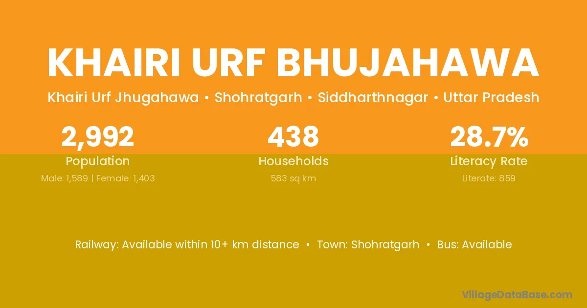 Khairi Urf Bhujahawa village has a total population of 2,992 people, of which 1,589 are males and 1,403 are females.