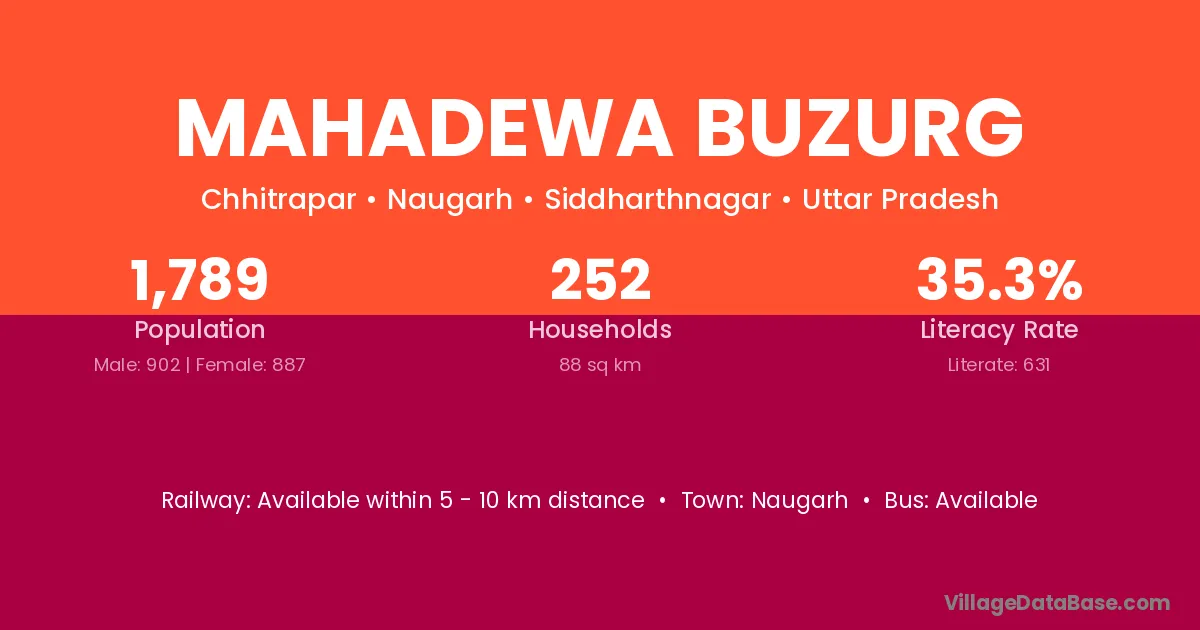 Mahadewa Buzurg village has a total population of 1,193 people, of which 599 are males and 594 are females.