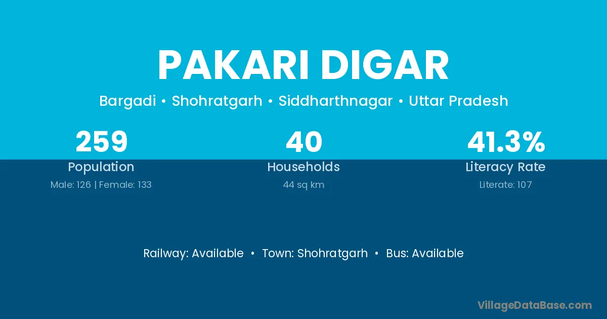 Pakari Digar village has a total population of 259 people, of which 126 are males and 133 are females.