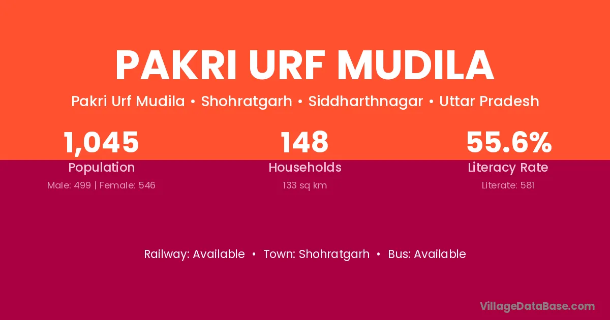 Pakri Urf Mudila village has a total population of 1,045 people, of which 499 are males and 546 are females.