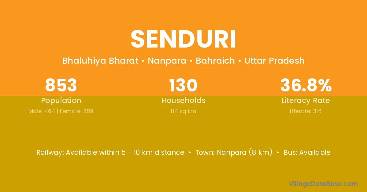 Senduri village has a total population of 417 people, of which 218 are males and 199 are females.
