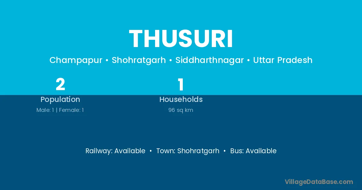 Thusuri village has a total population of 2 people, of which 1 are males and 1 are females.