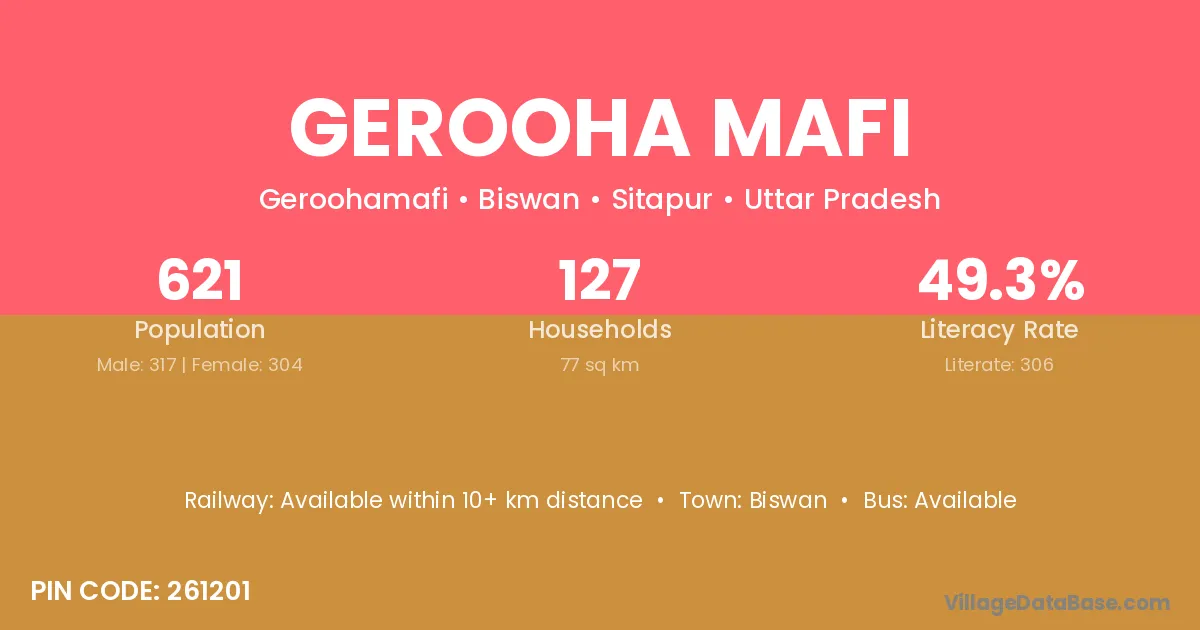 Biswan is the nearest town to Gerooha Mafi village for major economic activities