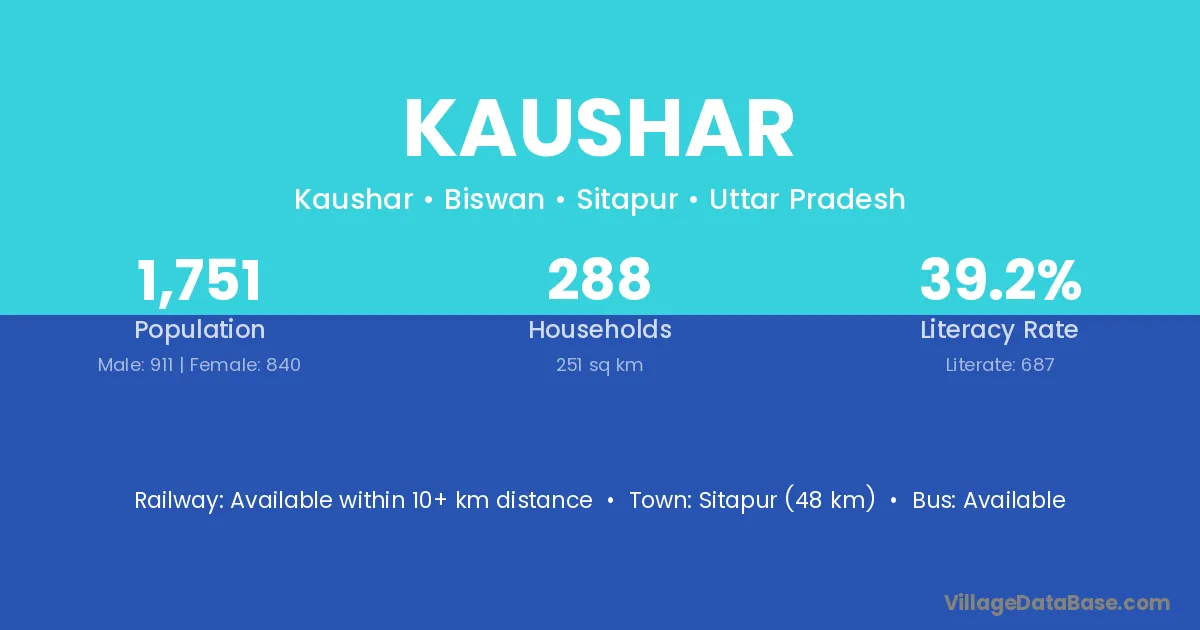 Sitapur (48 km) is the nearest town to Kaushar village for major economic activities and is located approximately 48 km away.