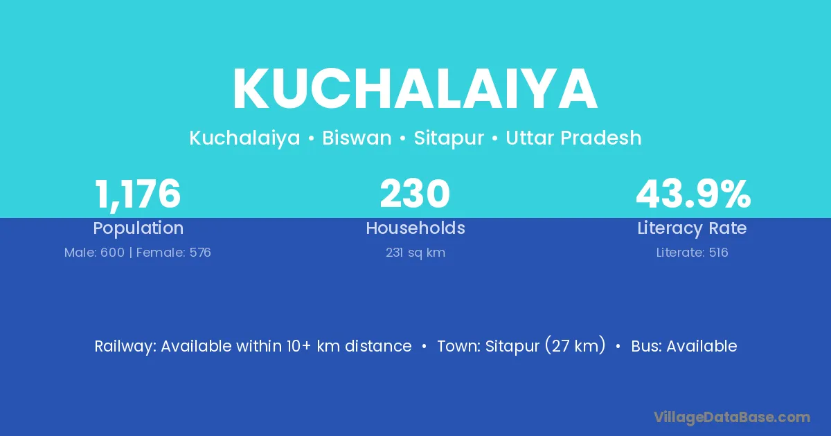 Sitapur (27 km) is the nearest town to Kuchalaiya village for major economic activities and is located approximately 27 km away.