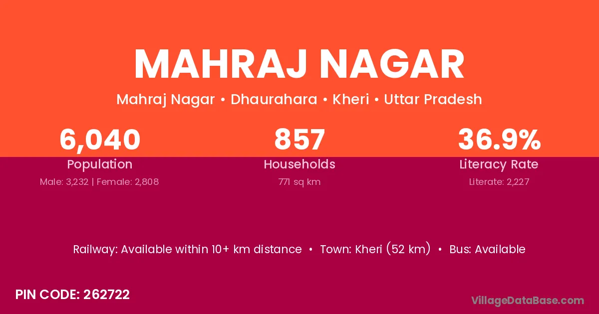 Sitapur (27 km) is the nearest town to Mahraj Nagar village for major economic activities and is located approximately 27 km away.