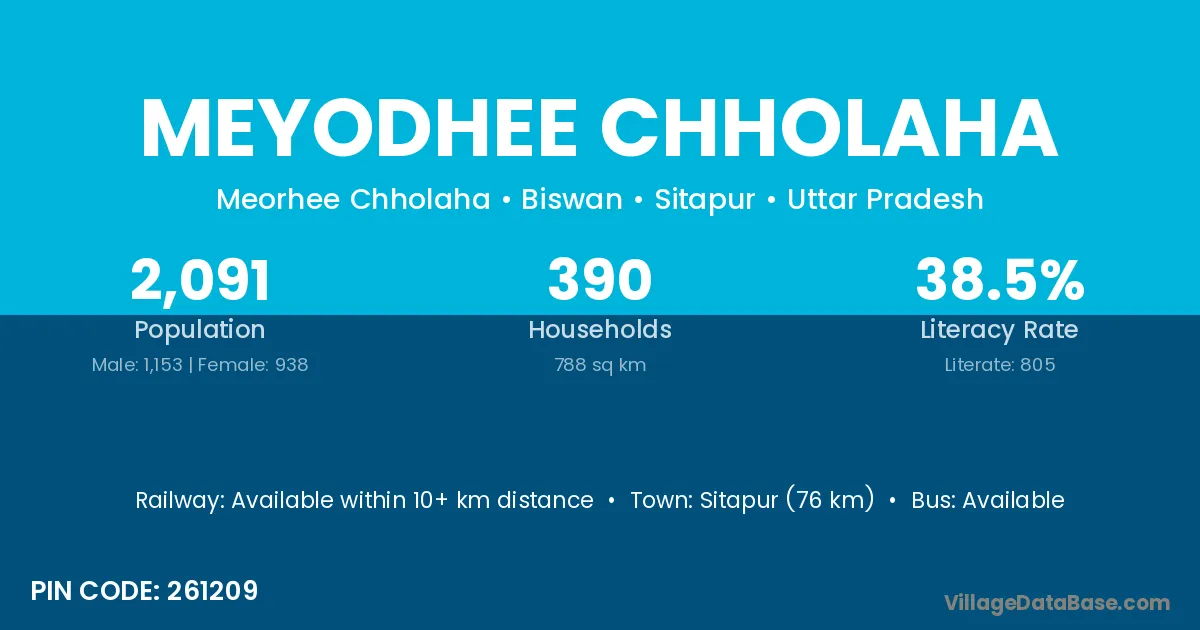 Meyodhee Chholaha village has a total population of 2,091 people, of which 1,153 are males and 938 are females.
