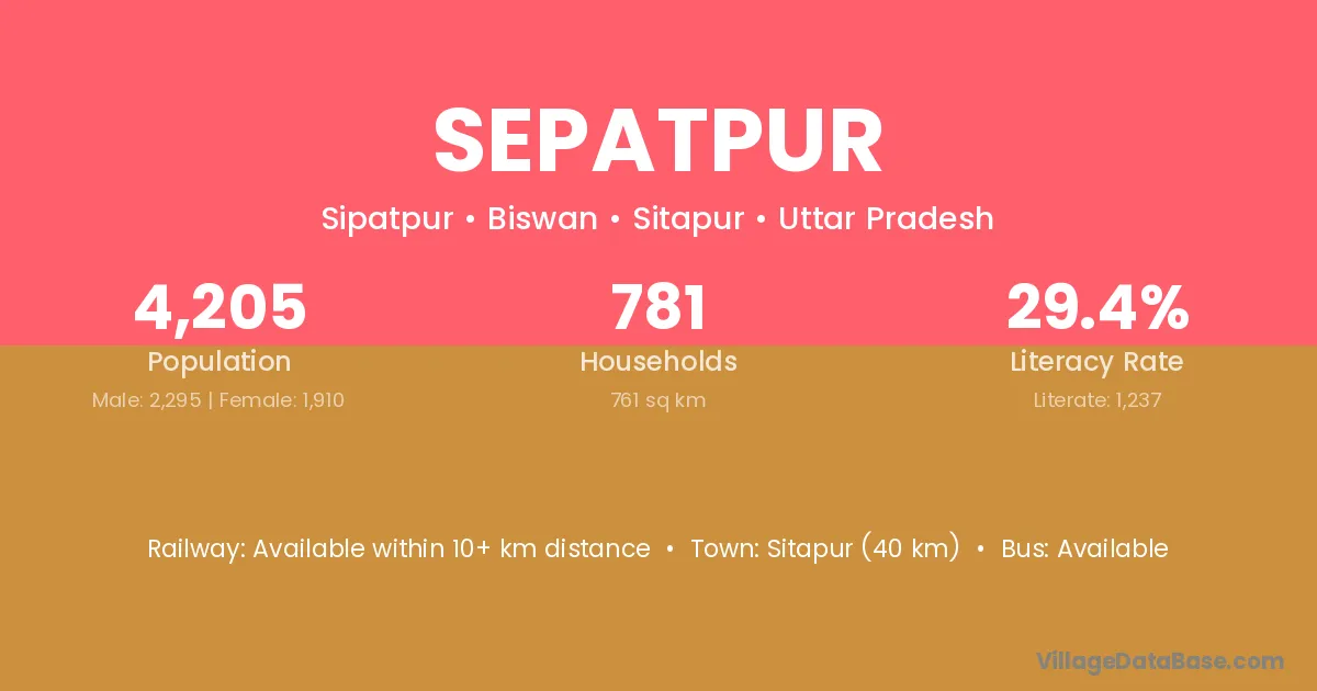 Sitapur (40 km) is the nearest town to Sepatpur village for major economic activities and is located approximately 40 km away.