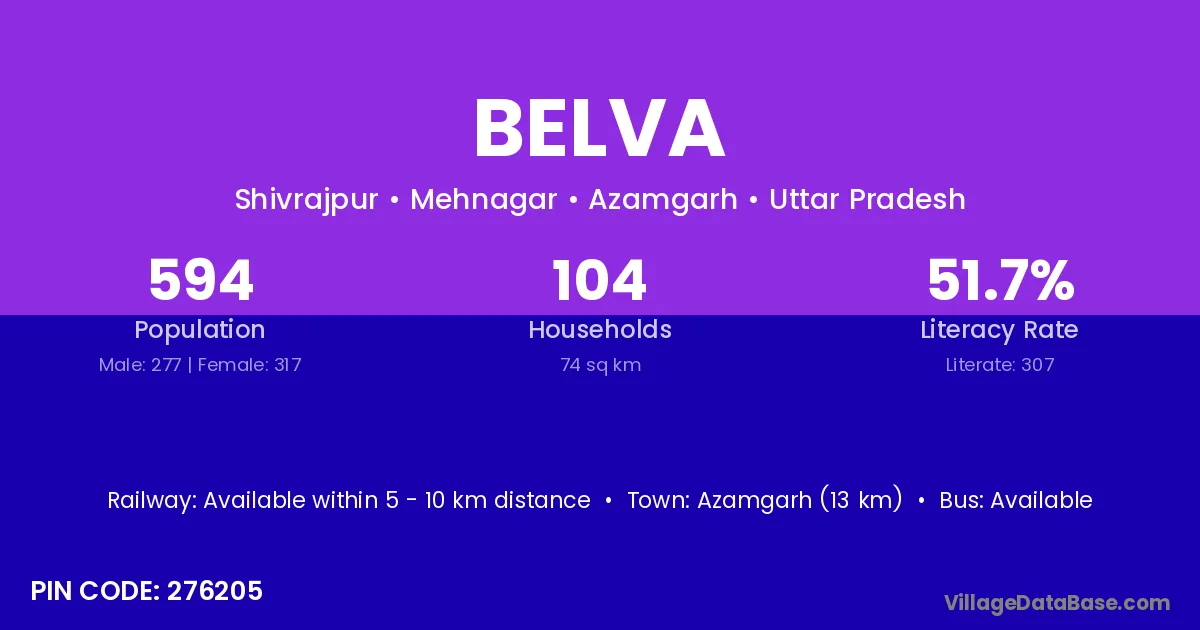 Sitapur (65 km) is the nearest town to Belva village for major economic activities and is located approximately 65 km away.