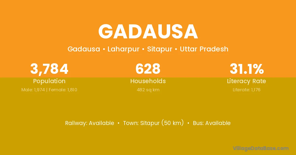 Sitapur (50 km) is the nearest town to Gadausa village for major economic activities and is located approximately 50 km away.