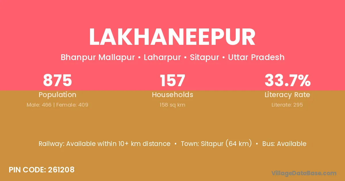 Sitapur (64 km) is the nearest town to Lakhaneepur village for major economic activities and is located approximately 64 km away.
