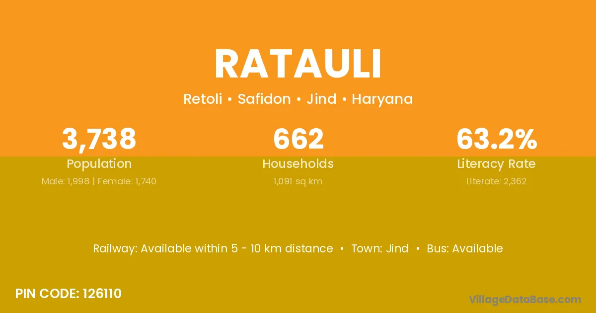 Ratauli village has a total population of 1,968 people, of which 1,067 are males and 901 are females.