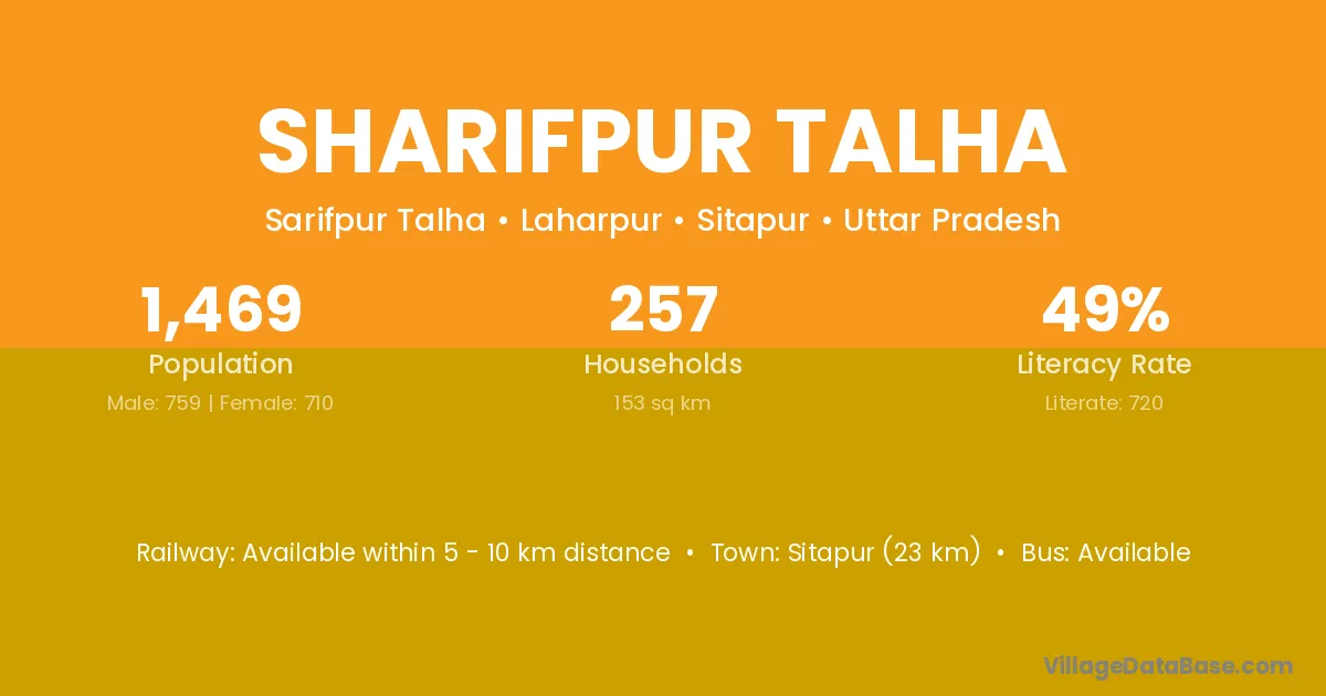 Sharifpur Talha village has a total population of 1,469 people, of which 759 are males and 710 are females.