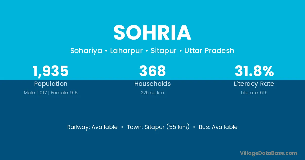 Sitapur (55 km) is the nearest town to Sohria village for major economic activities and is located approximately 55 km away.