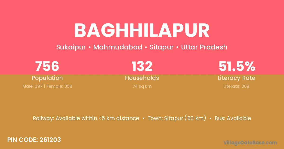 Sitapur (60 km) is the nearest town to Baghhilapur village for major economic activities and is located approximately 60 km away.