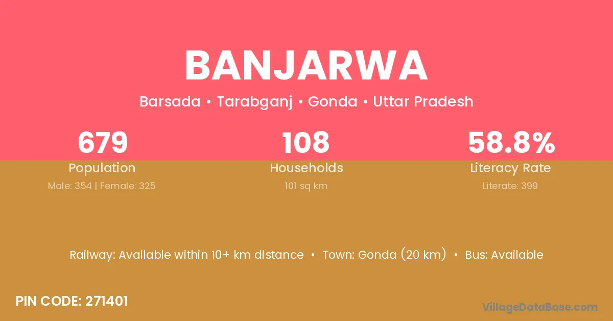 The literacy rate of Banjarwa village is 49.47%. Male literacy stands at 54.72% and female literacy at 42.68%.