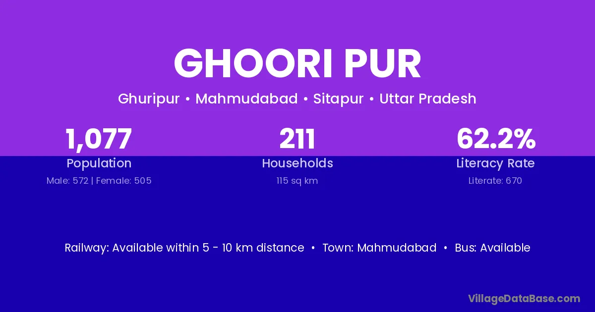 Ghoori Pur village has a total population of 1,077 people, of which 572 are males and 505 are females.