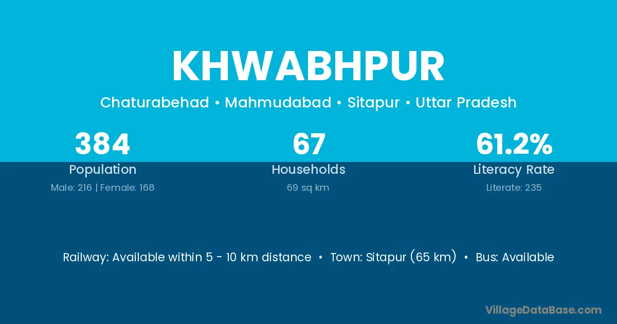 Sitapur (65 km) is the nearest town to Khwabhpur village for major economic activities and is located approximately 65 km away.