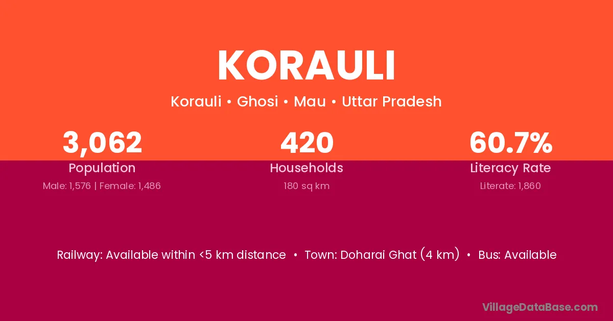 Sitapur (60 km) is the nearest town to Korauli village for major economic activities and is located approximately 60 km away.