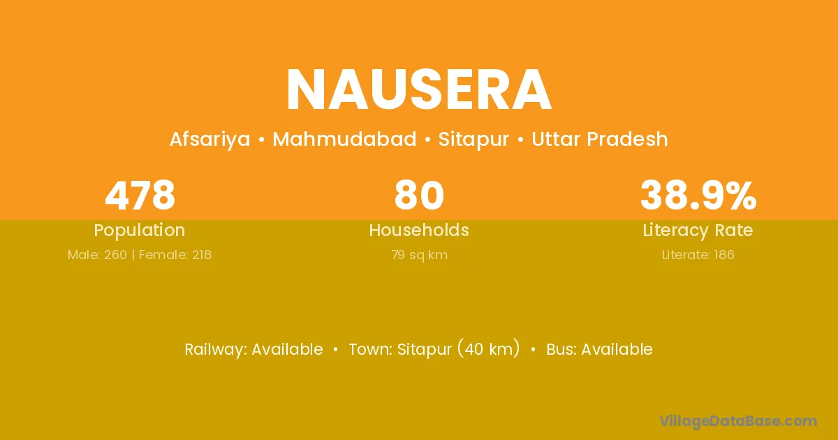 Sitapur (40 km) is the nearest town to Nausera village for major economic activities and is located approximately 40 km away.